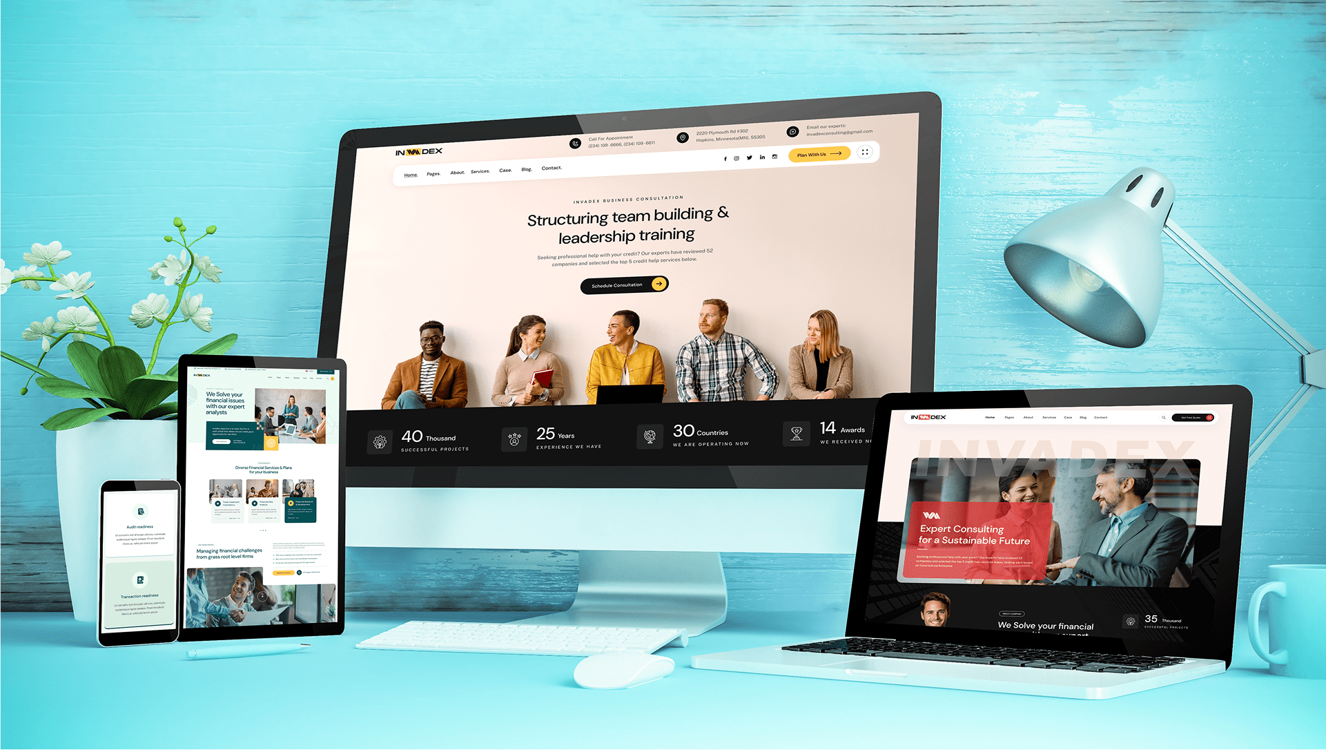We are Invadex. It is designed as a modern & functional website for business & financial agencies.